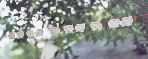 The computer spat out labels to put on the control cards, which were placed in rank order on this line for all to see the results.