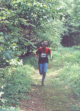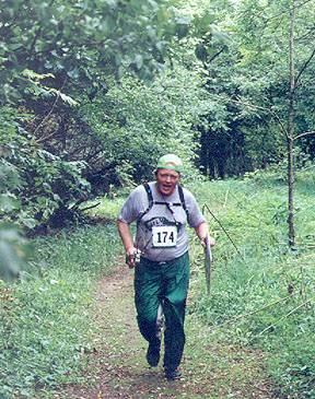 Most 80m competitors came down this mosquito-infested trail and into the finish corridor. Daniel Nagy is about 200 yards away from winning a gold medal in M19 category.