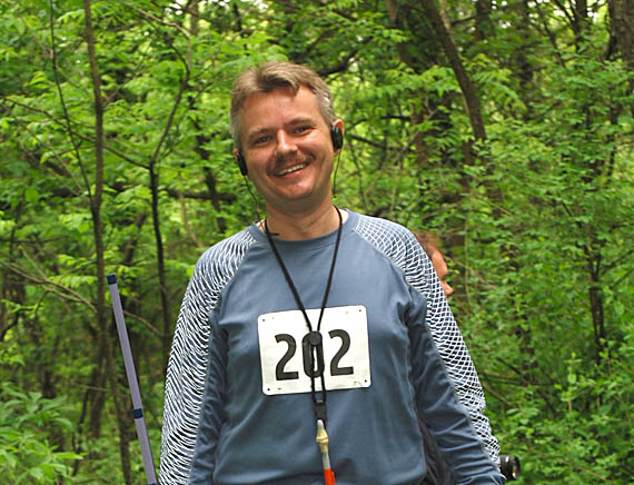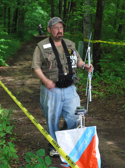 Woody Woodbury KC9CGN of Woodburn, IN finishes his first-ever championship 2m course.