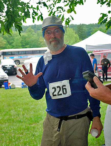 At the 2m finish line, volunteer Jerry Shipp KB8UBG wrote down the times of all the finishers, just in case there was a problem with the electronic scoring system. (Fortunately, there wasn't.)