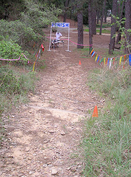 A competitor-eye view looking down the 80m finish corridor. Yes, it's downhill, with rocks.