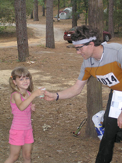 Abi, the granddaughter of Tom and Vicki Risher, KD6HWD and KD6MCM, helped April by giving Gatorade to finishers on Saturday. Charles Scharlau NZØI won gold in M40.