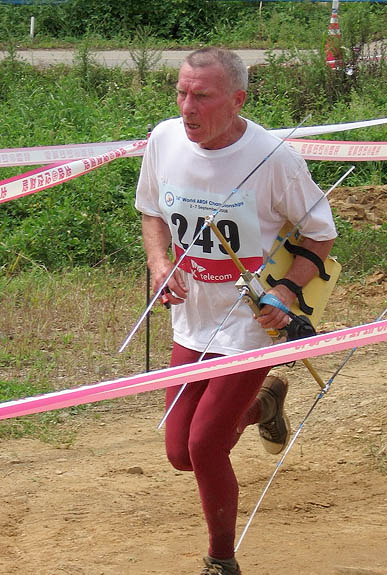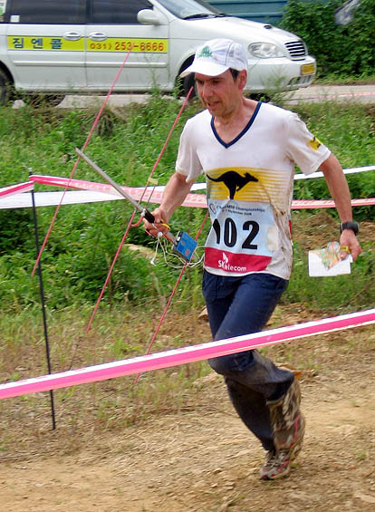Bryan Ackerly VK3YNG (M40) of Australia, who has come to the USA for several ARDF events, beginning with the 1999 IARU ARDF Region 2 Championships. (By WB6BYU)