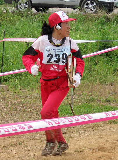 Yoshiko Yamagami JQ1LCW (W35) of Japan, who has come to the USA for several ARDF events, including the 1999 IARU ARDF Region 2 Championships. (By WB6BYU)