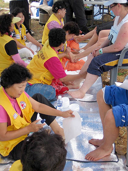 A free foot massage was provided for all competitors after they finished. A sign admonished them to wash their feet first. (By WB6BYU)