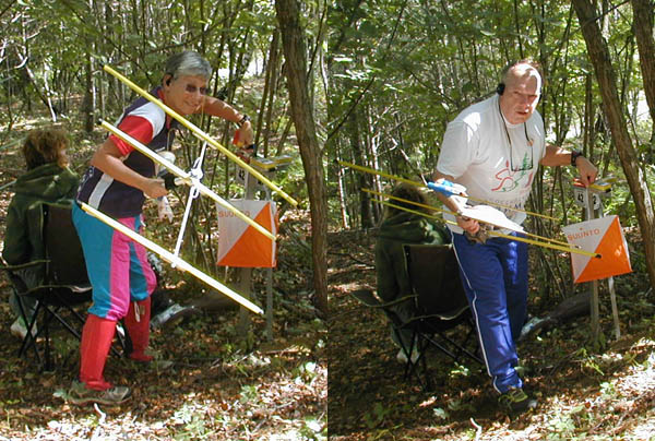 Ruth Bromer WB4QZG and Dick Arnett WB4SUV punch in at one of the two-meter transmitters (but not at the same instant) on model event day. (WB4SUV)