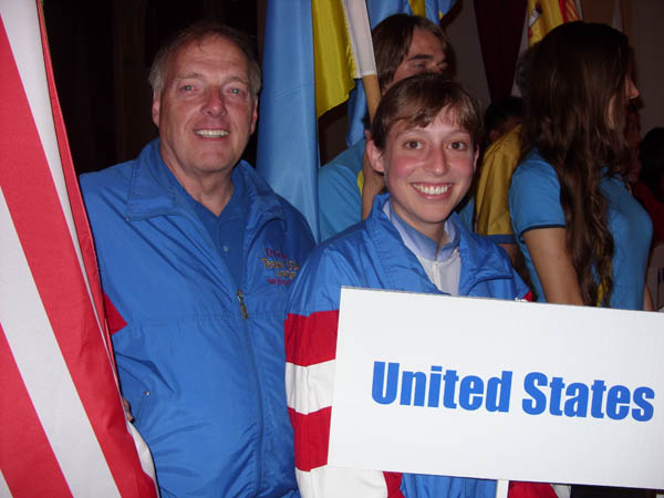 Dick Arnett WB4SUV held the flag for the USA and Lori Huberman held the sign. (WM5R)