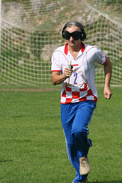 This is Emil Punos of Croatia, who won the "Veterans" category in the blind championships by finding all five transmitters in two minutes and 18 seconds. Dennis Schwendtner WB6OBB of USA finished fourth in that category, finding all five in just under five minutes. (KE6HTS)