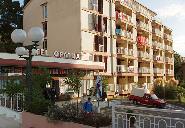 Hotel Opatija was just one of many hotels housing the participants. Note the flags on some of the balconies, especially the balcony with both Canadian and German flags. Nick Roethe DF1FO competed for Canada, his nation of birth, while his wife Brigitte competed for Germany, their nation of residence. (WB6RDV)