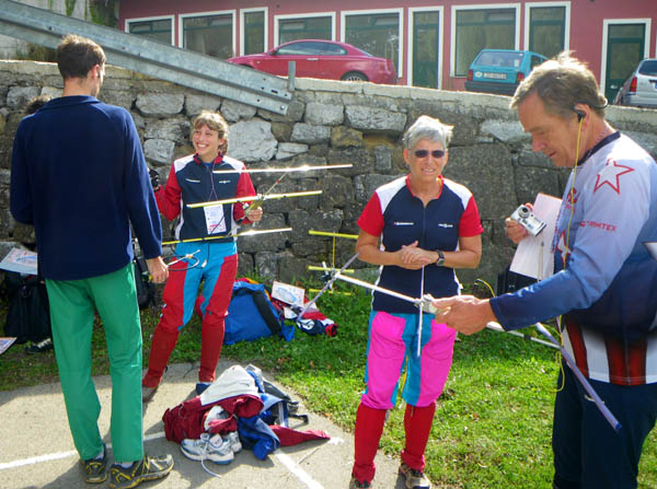 Getting ready for the blind competition, which took place in Opatija on the same day as the Model Event. Dennis Schwendtner WB6OBB is being led in at left. (WB6RDV)
