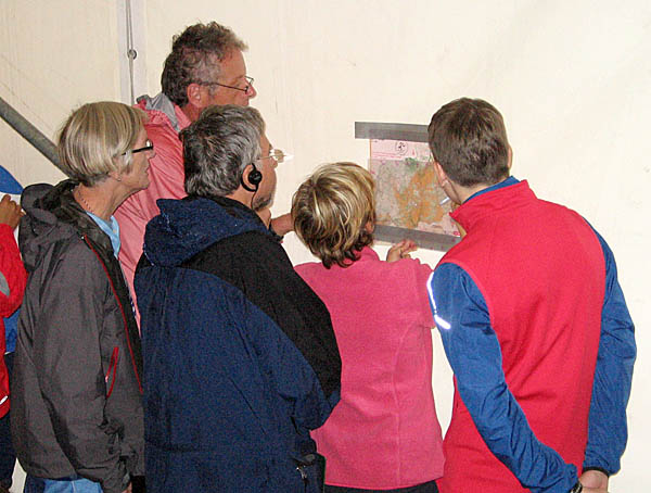 Normally, maps are given to competitors only about ten minutes before they start onto a course. When it was learned that some competitors already possessed maps of the competition area and some had even done orienteering there, giving them an unfair advantage, the organizers posted the maps on the waiting tent walls for all to study. (WB6BYU)