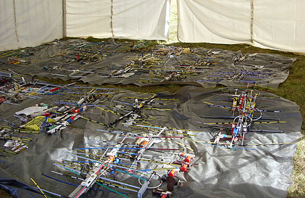 The impound area with hundreds of two-meter and 80-meter ARDF sets to be used later by competitors. Each competitor provides his or her own sets. (WM5R)