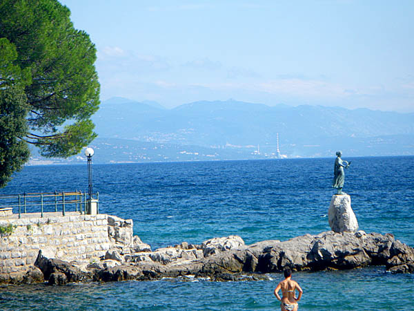 A popular tourist spot in Opatija is the Maiden with the Seagull statue by Zvonko Car. (K5JGH)