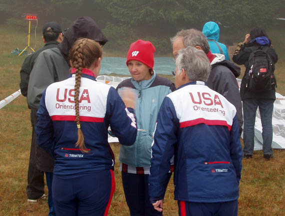 Team USA members discuss strategy before the second two-meter event of the 2012 ARDF World Cup. The same map was used for each World Cup day. (WB6RDV)