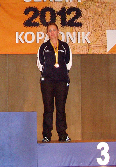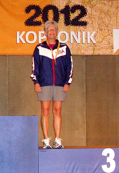 Alla Mezhevaya received a bronze medal for her 80-meter World Cup runs in W35 category. (WB6RDV)