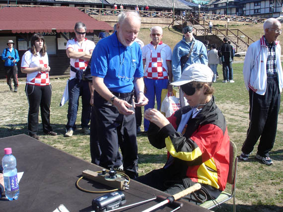 The Second ARDF Championships for the Blind took place on Model Event Day. Everyone had to wear opaque goggles for this event because some competitors had a little sight. (KE6HTS)